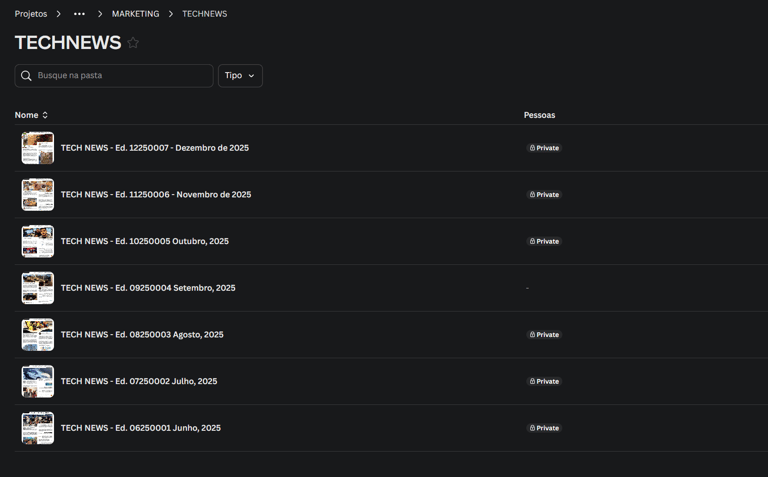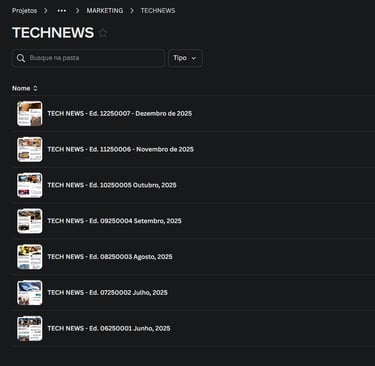 Consistência Operacional: Organização do cronograma mensal de publicações, mantendo o histórico de edições organizado e acessível (como na imagem).